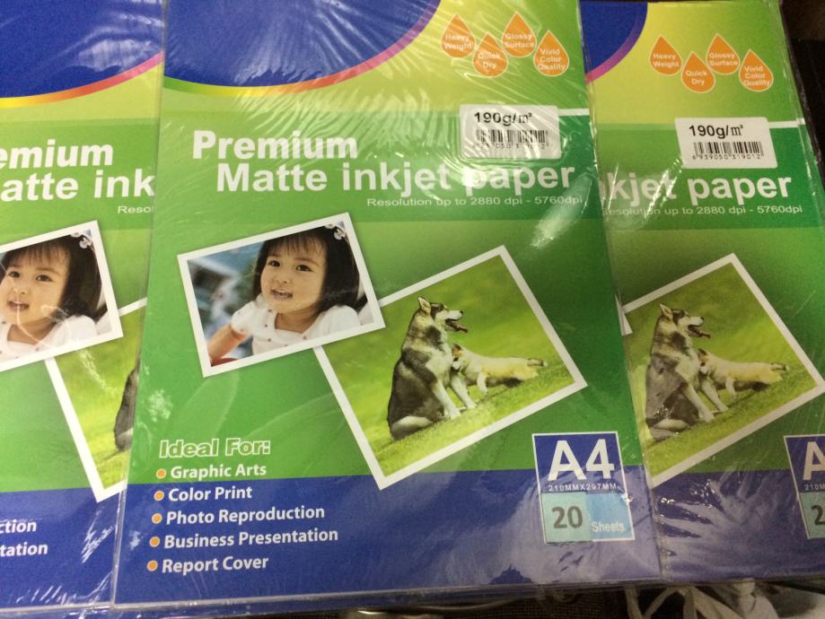 * Premium Matte Inkjet paper, A4, 190g/m3 - 4 setova *