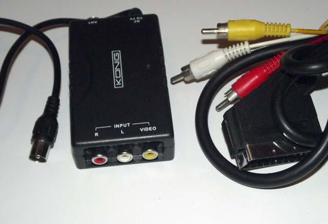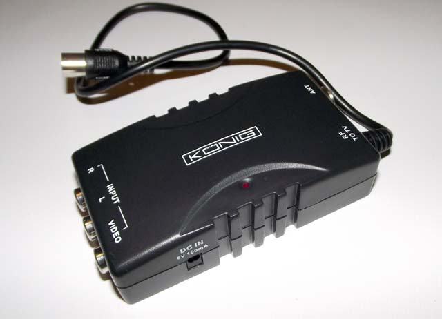 Konverter koji televizijski signal sa uređaja koji imaju SCART ili Cinch output pretvara u analogni RF TV signal (antenski priključak). Može se koristiti za TV prijemnike koji nemaju SCART, DVD ili VCR rcordere koji imaju anlogni prijemnik i samo antenski ulaz ili su drugi ulazi zauzeti sa nekim drugim uređajima. Signal se n TV tuneru nalazi na kanalu "0".
