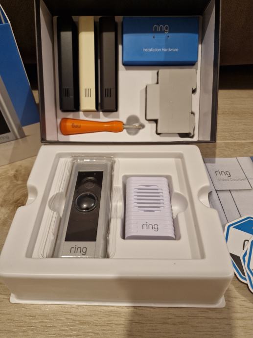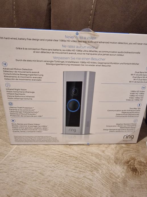 Prodajem navedeno Pametno zvono. Dolazi u originalnom pakiranju sa svim dodatcima + unutarnje zvono koje možete staviti di hoćete. U kutiji su i transformator, fronte različite boje i ostala oprema za montažu. Koristim Ring kamere već godinama i odlične su.