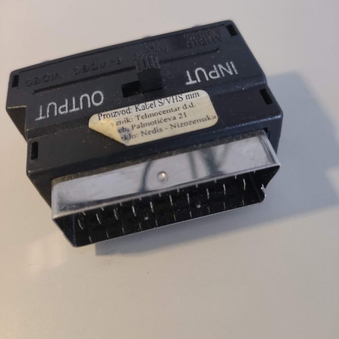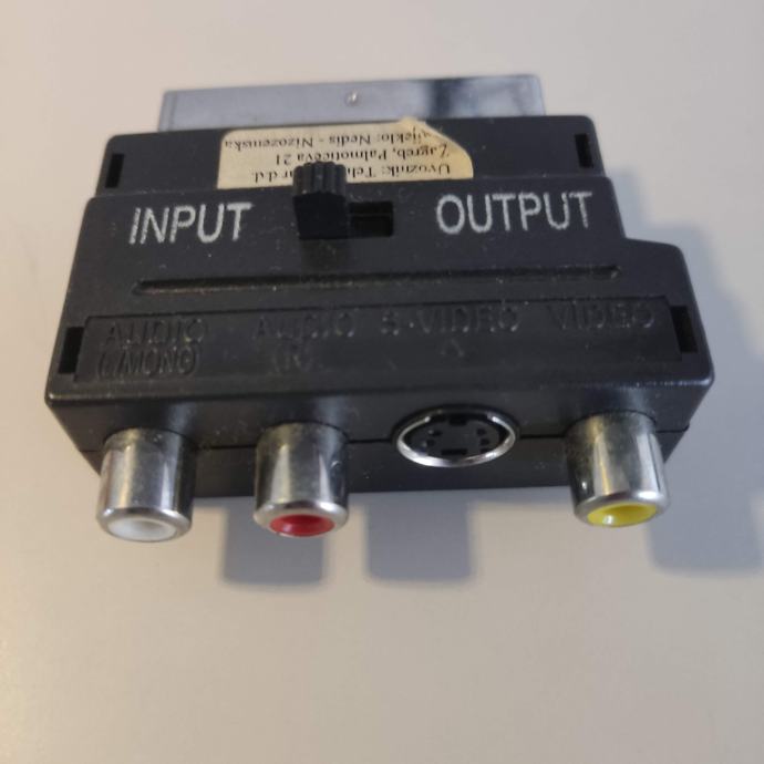 SCART adapter na stereo audio-video 3 chinch konektora ili S-VHS konektor. Može se kombinirano koristiti jer ima prekidač da se odredi gdje je ulaz (input), a gdje izlaz (output) audio/video signala.