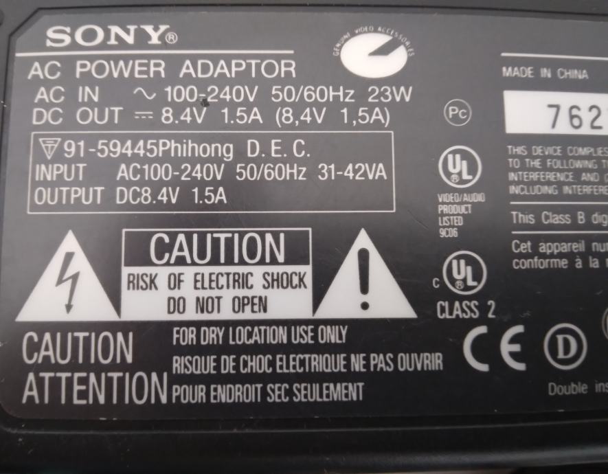 SONY AC ADAPTER ISPRAVLJAČ KAMERA 8 mm Sony hi8 Model AC-L10A
