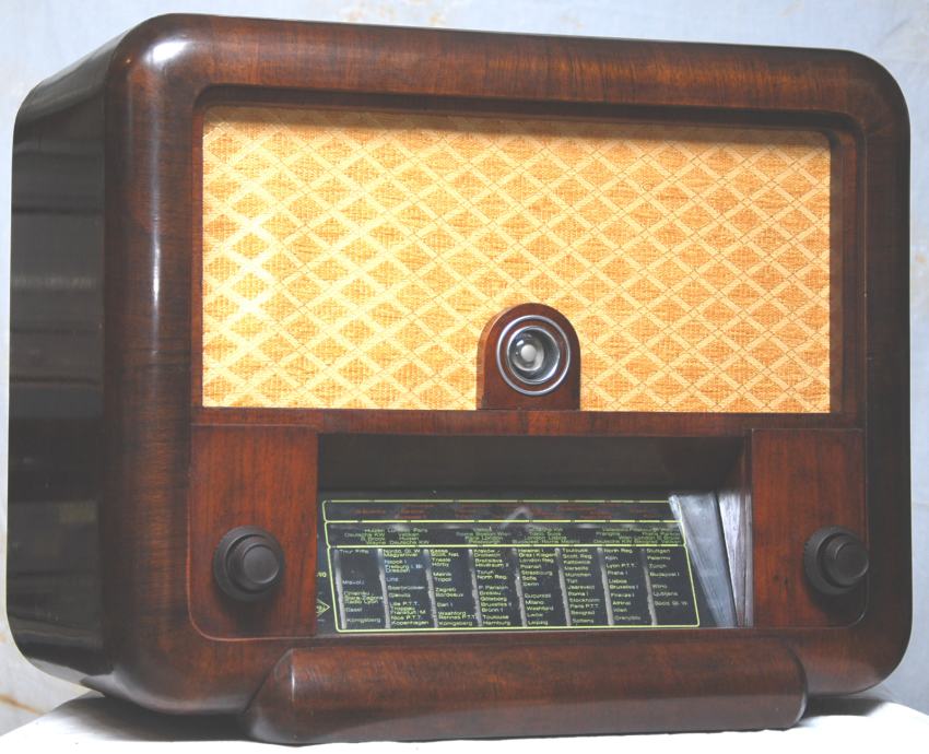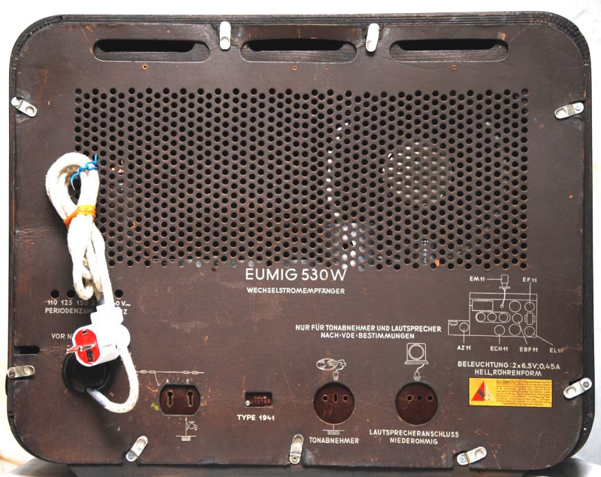 Prodajem stari austrijski radio marke EUMIG model 539 W proizveden 1939/41. godine. Kutija radija je restaurirana šelakom a u elektronski dio ugrađen je UKV tuner (88-108 MHz) tako da se radio može slušati kao i svaki suvremeni radio. Veličina radija (šxvxd) je 50x34x24 cm.