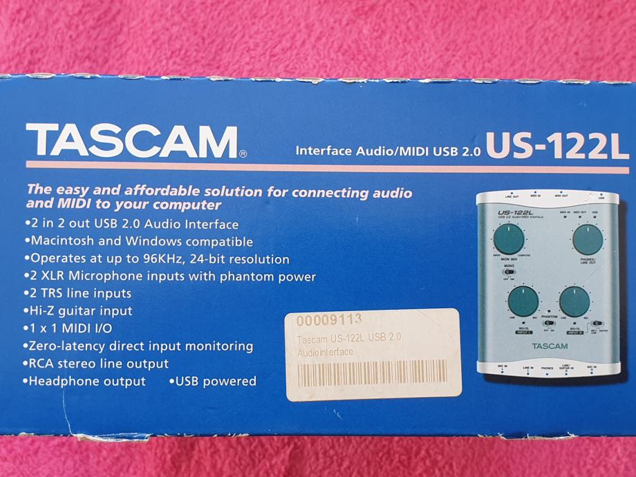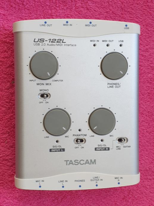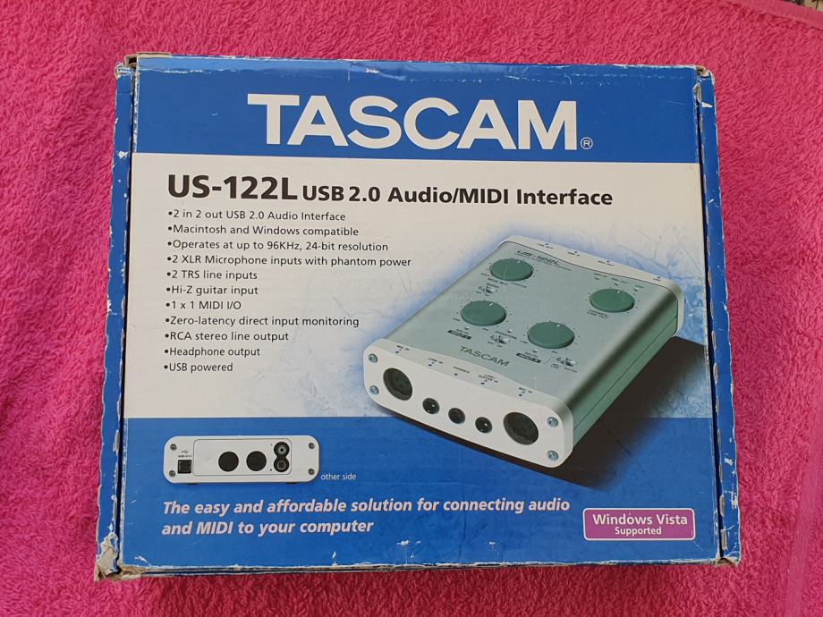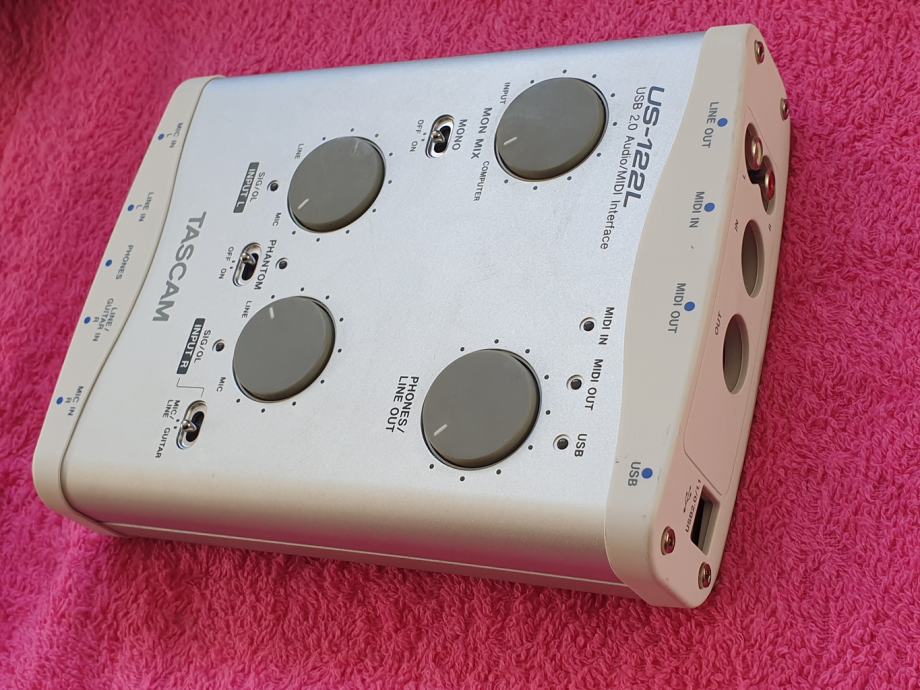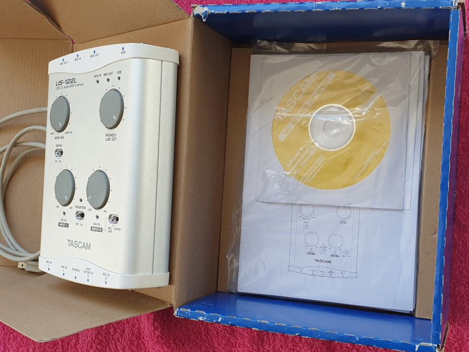 Prodajem jako sačuvan Tascam US-122L, mali kućni studijski USB interface za snimanje zvuka, Made in Japan, za PC, testiran, izvrsno radi, iznimno niski šum, idealno za kućna snimanja ili rad na terenu. Mogu se spojiti 2 mikrofona (ima i fantomski napon 48V za studijske kondenzatorske mikrofone), MIDI, gitarski ulaz, izlaz za slušalice... Japanska Tascam kvaliteta!
