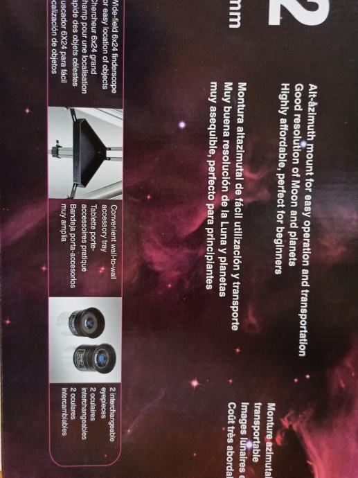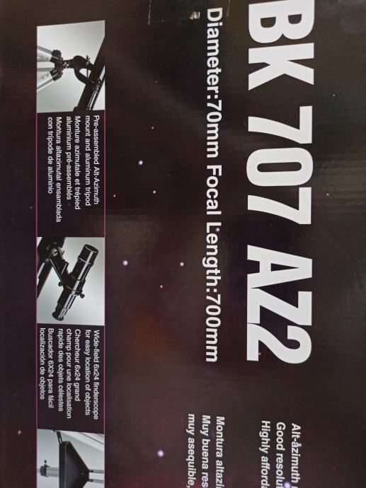 Prodajem rabljeni teleskop Sky-Watcher BK 707 AZ2, odličan za promatranje noćnog neba. Teleskop dolazi u originalnoj kutiji i u odličnom je stanju. Idealan za početnike i zaljubljenike u astronomiju koji žele istražiti zvijezde i planete.