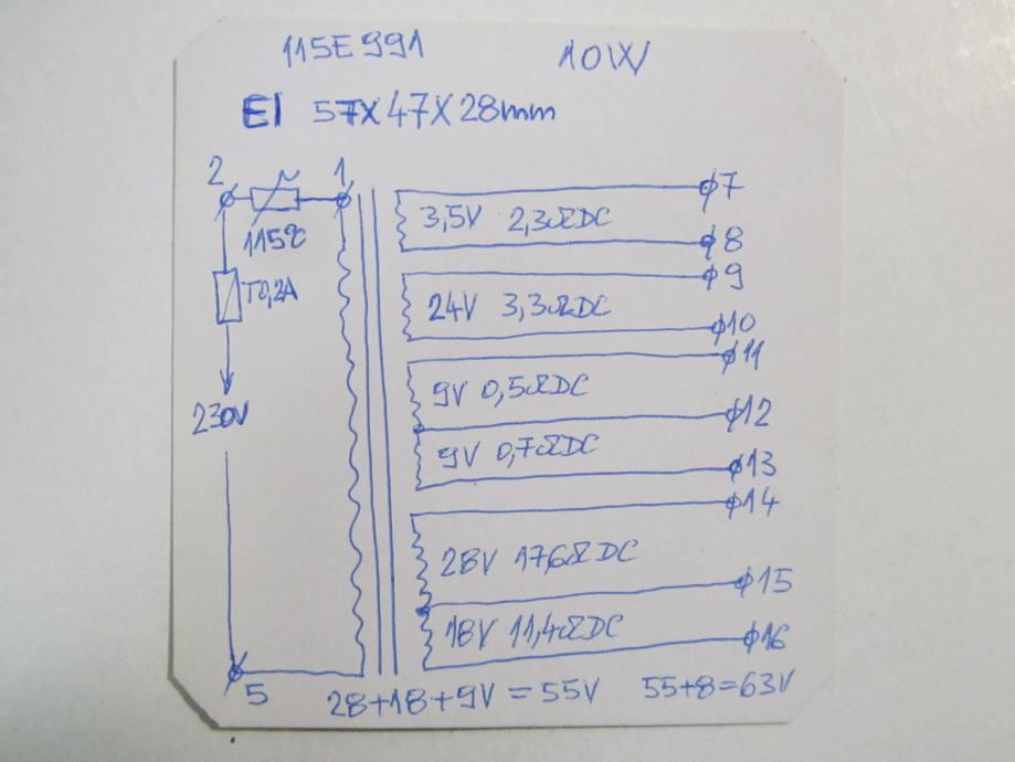 KOMBINACIOM SPAJANJA MOŽEMO IMATI SEKUNDARNI NAPON 55V ili 63V.