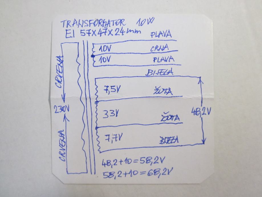 KOMBINACIOM SPAJANJA MOŽEMO IMATI SEKUNDARNI NAPON 58.2V ili 68.2V.