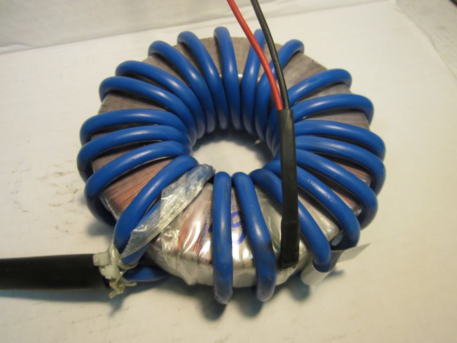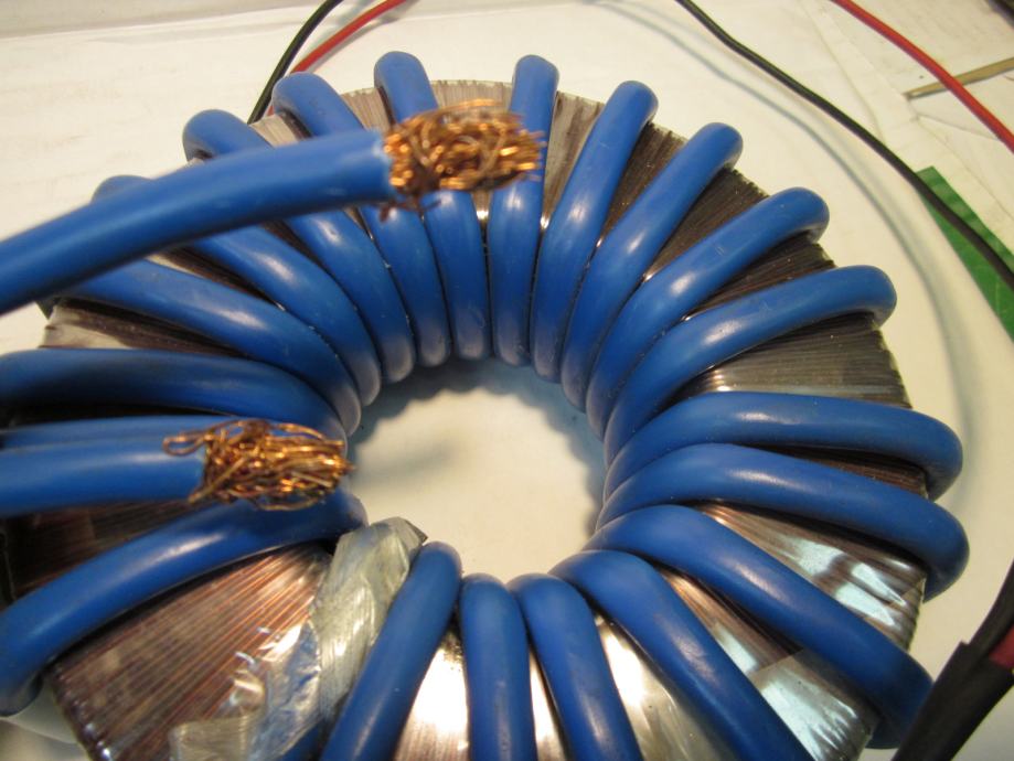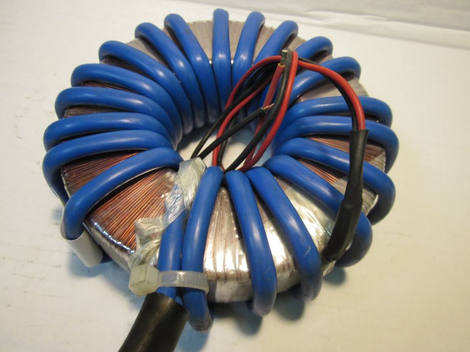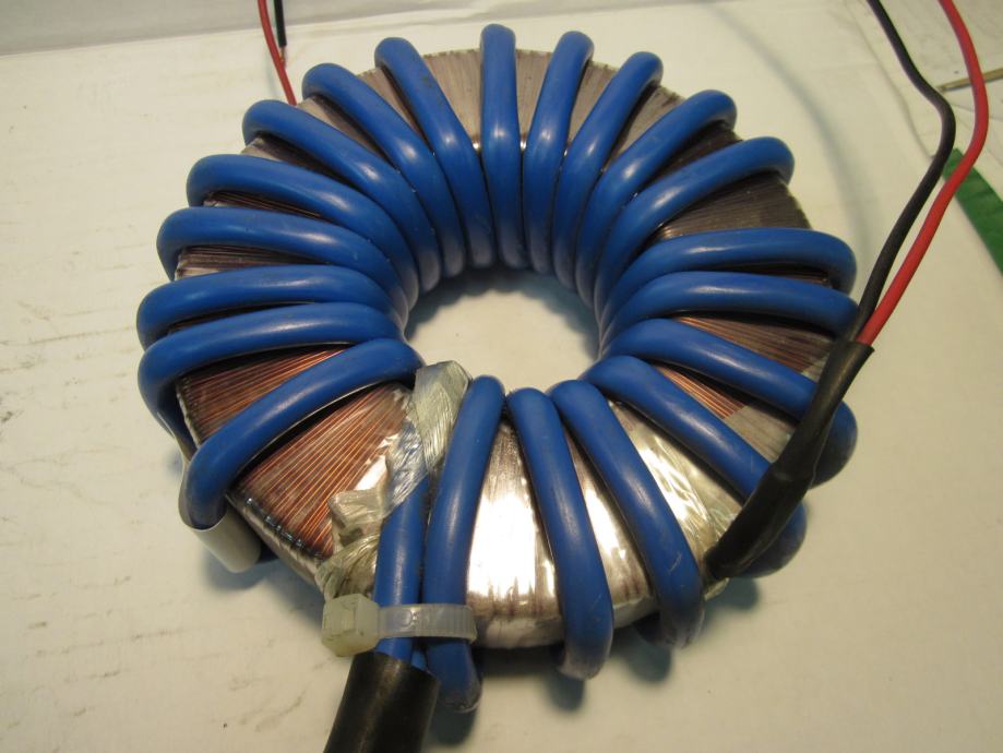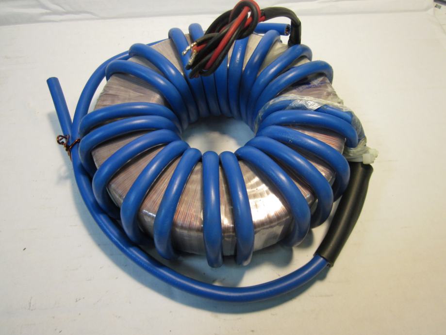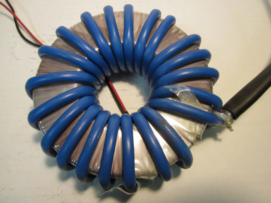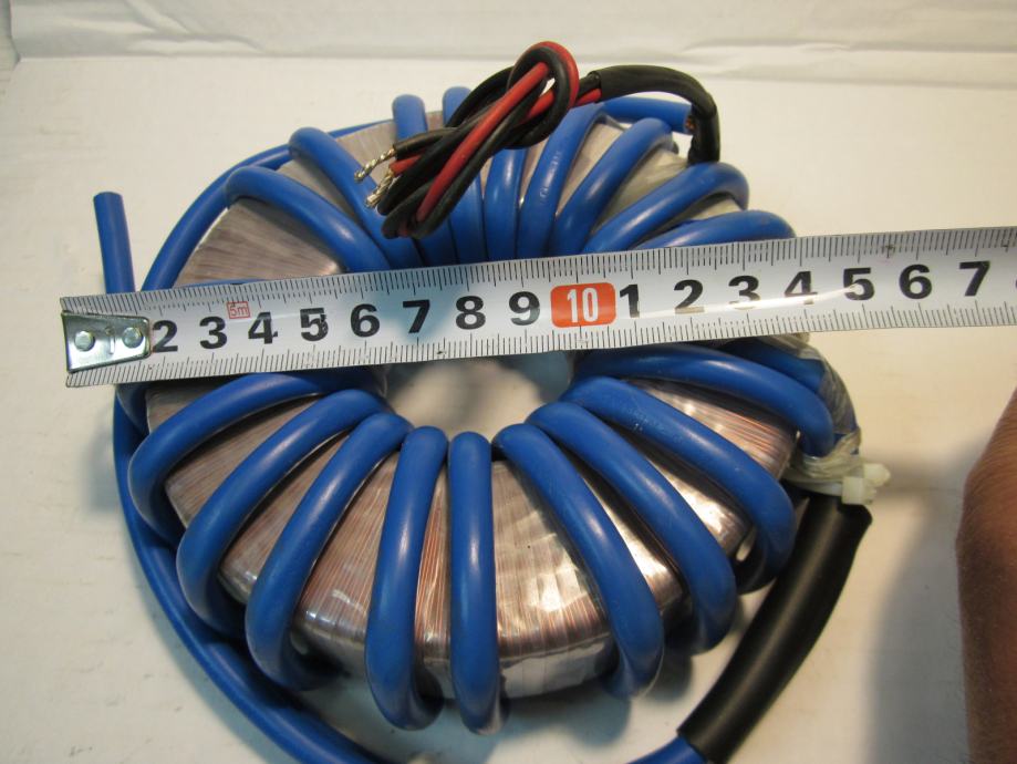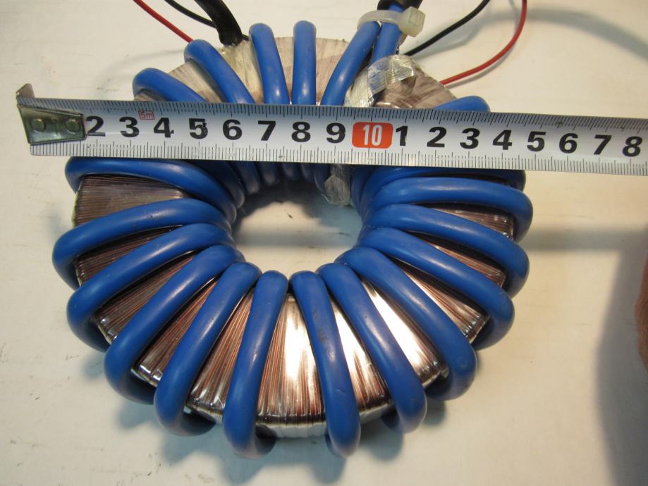 ISPRAVAN TRANSFORMATOR. VELIKE STRUJE U SEKUNDARU. POGODAN ZA NAPAJANJE ELEKTRONSKIH LAMPI ( 6.3V )KOD IZRADE CB LINEARA. MOŽE SE KORISTITI ZA IZRADU UREĐAJA ZA REZANJE STIROPORA. NAPON SEKUNDARA SE MOŽE SMANJITI SMANJENJEM BROJA ZAVOJA. SEKUNDARNA ŽICA 16 KVADRATNIH MILIMETARA.