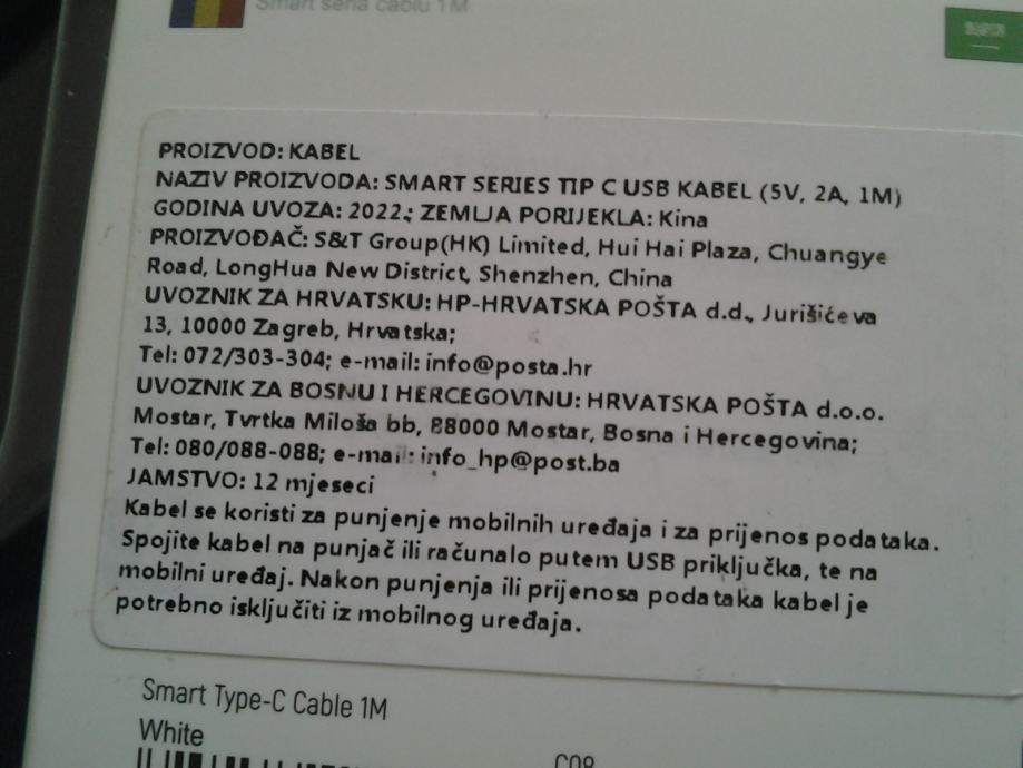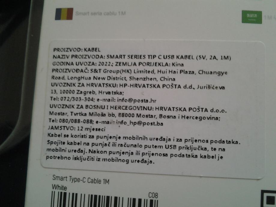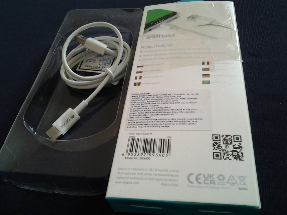 USB Smart kabel bijeli, series Tip C, 5V 2A, 1m, Devia. Novo. zapakirano, nekorišteno, ispravno. Cijena 5 EUR.