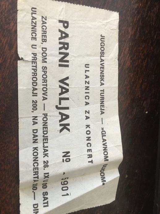 Ulaznica sa koncerta 1983. vinil Glavnom ulicom: Parni Valjak