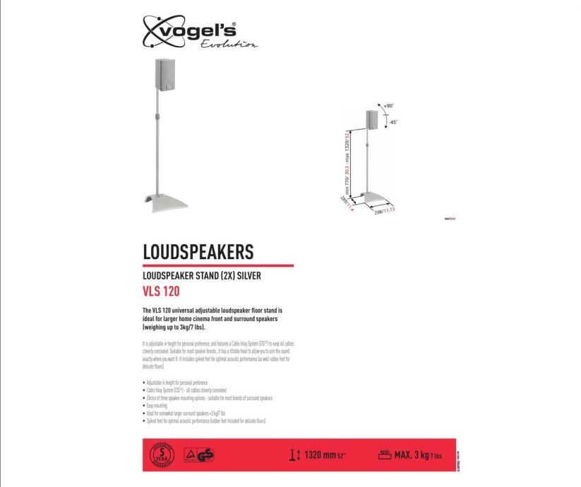 Vogel's Evolution VLS 120 podni nosači za zvučnike crni, podeseivi po visini i nagibu,