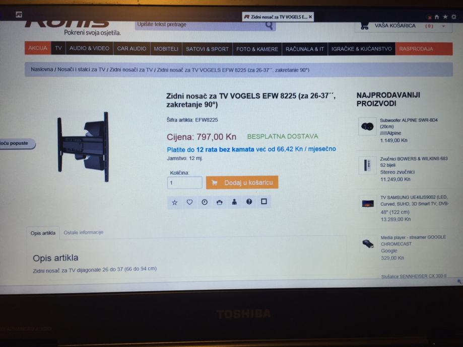 prodajem zidni stalak za TV kao na slikama. original zapakirano nikada koristeno. za LED, plazmu ili LCD. za tv 26-37 zoll ( dijagonale 66-94 cm)