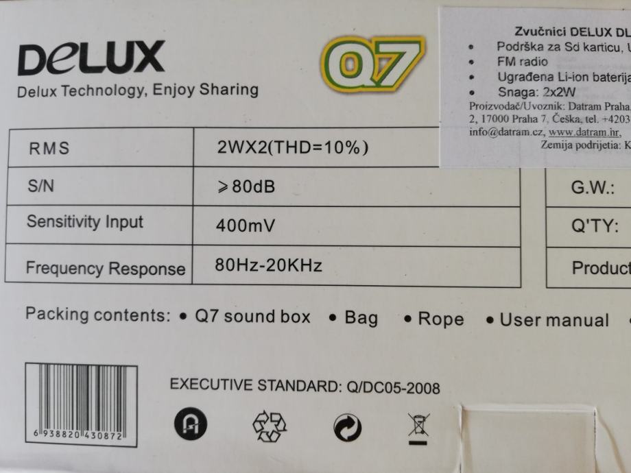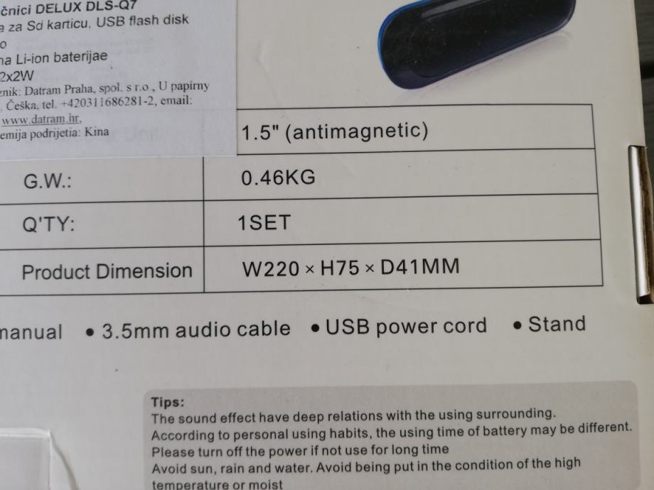Prodajem novi zapakirani zvučnik za reprodukciju zvuka s karakteristikama na priloženim fotografijama.
