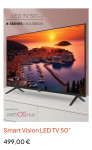 Smart Vision LED android tv 50" **239,99€** NOVOLokacija: Donja Dubrava, Donja DubravaObjavljen: 18.04.2026.Spremi oglasPrikaži na mapiKorisnik nije trgovac239 €