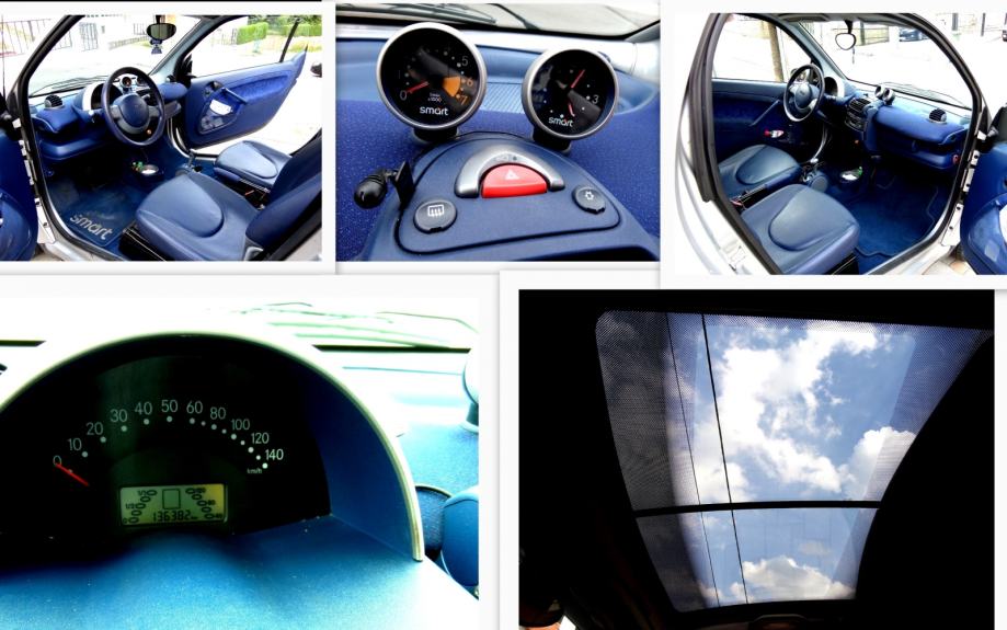 Smart fortwo coupe PULSE 2001. AUTOMATIC/STEPTRONIC, IZVANREDAN. Registriran samo do 19.09.2015. Od opreme ima: Kožna sjedala, KLIMU koja besprijekorno radi, alu felge, el. retrovizori, stakleni panorama krov, el. prozori, radio CD, pokazivač okretaja, sat, handsfree... Prije 20000km motor je generalno uređen u servisu HORVAT. Motor i getriba rade besprijekorno. Autić je za svaku preporuku. Molim zvati na broj: 095 8195195