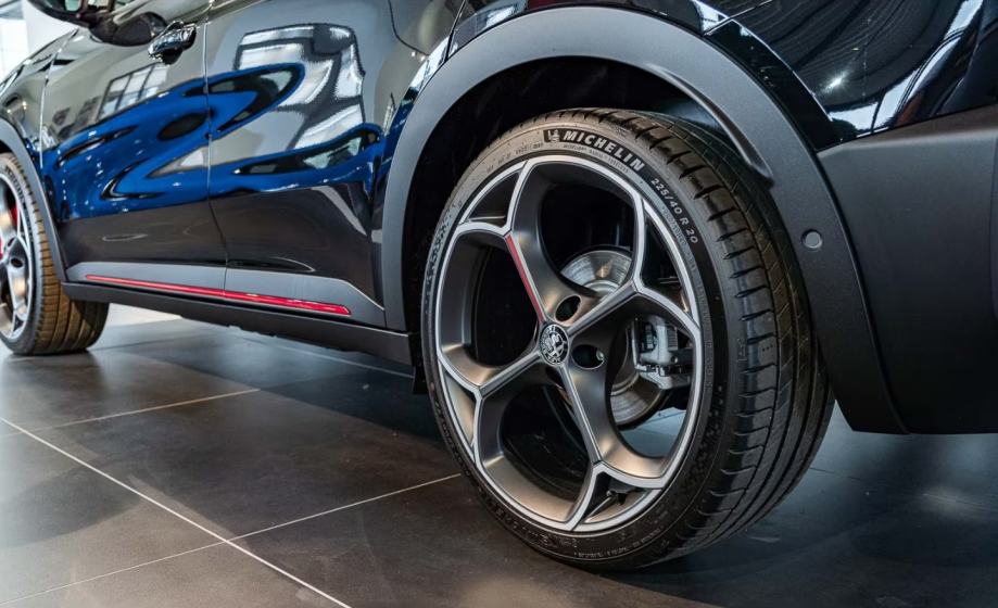 Sportski kočioni sustav s obojenim fiksnim čeljustima i natpisom Alfa Romeo