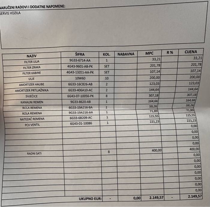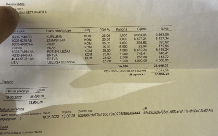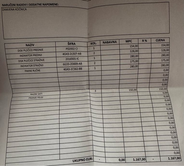 Garaziran uredno servisiran napravljen velik servis sto se moze vidjeti iz prilozenog racuna