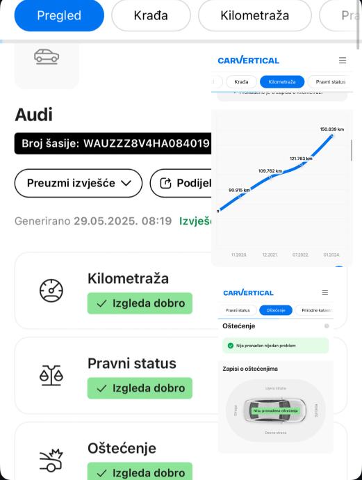Vozilo je izuzetno bogato opremljeno, upravo je napravljen mali servis od čega imamo potvrdu. Posjedujemo povijest vozila, servisnu knjigu, obadva ključa. Nema ulaganja na vozilo, vozilo nije nikada karambolirano. Posjedujemo car vertical izvješće.