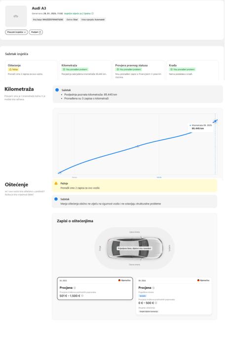 - Jamstvo na tehničku ispravnost vozila, prijeđene kilometre te podrijetlo vozila.