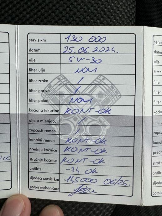 Zadnji servis (ulje i filteri) napravljen na 130.000km!