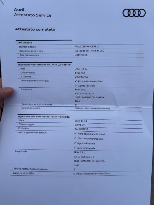 - Uredno servisiran i održavan po servisnom planu AUDI tvornice u ovlaštenom AUDI servisu