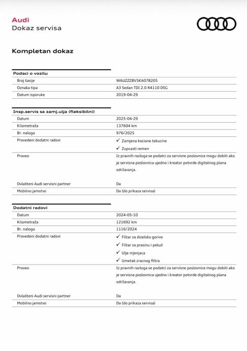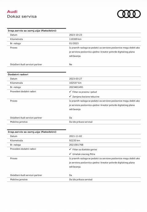 - Uredno servisiran i održavan po servisnom planu AUDI tvornice u ovlaštenom AUDI servisu!