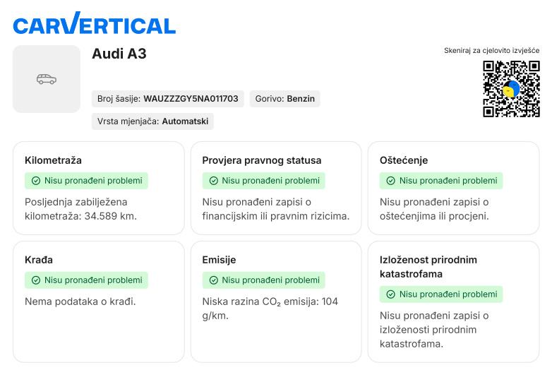 Na našoj WEB stranici možete pogledati kompletnu servisnu povijest i CarVertical izvještaj.
