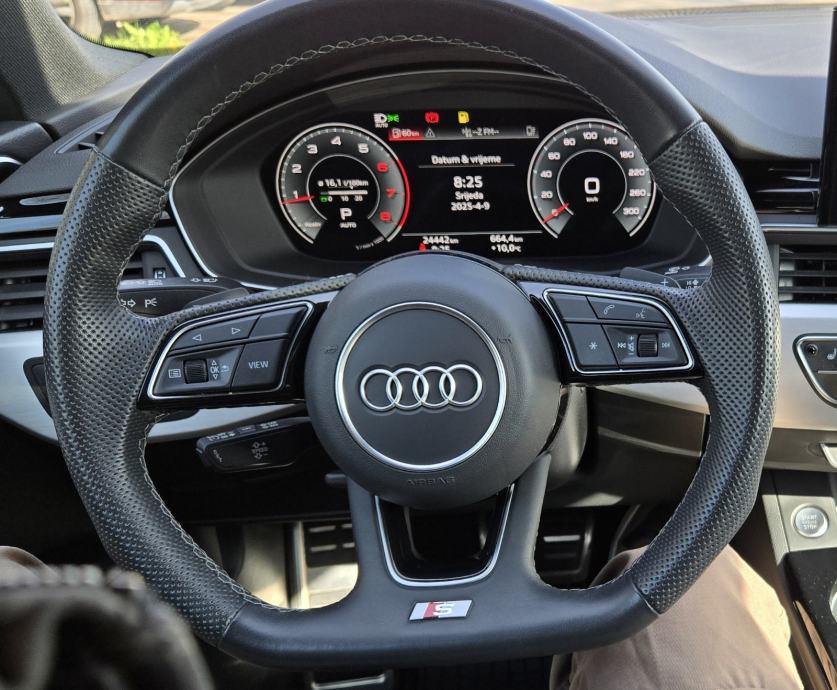 Dodatna oprema: LED farovi, S-tronic aut.mjenjač, Virtualni kokpit plus, naplatci 18' Graphite Gray gloss finish, boja auta: Gletcher White Metallic, Krovni otvor / šiber, S line unutrašnjost (sportska sjedala koža/tkanina, alu papučice, alu osvjetljeni pragovi, crni krov, crveno prošivena koža na volanu i mjenjaču, ..), odrezani sportski volan s tip-tronicom.