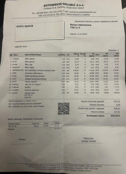 Mali i veliki servis napravljen