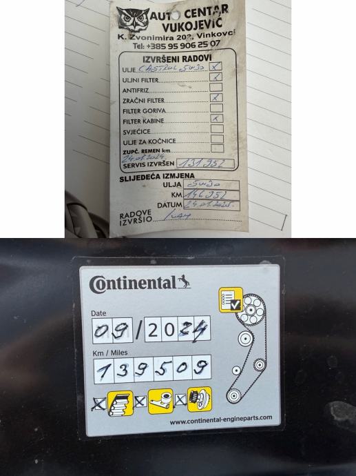 Veliki servis (zupčasti i klinasti remen, vodena pumpa, natezači..) napravljen 09./2024. na 139.509 km!