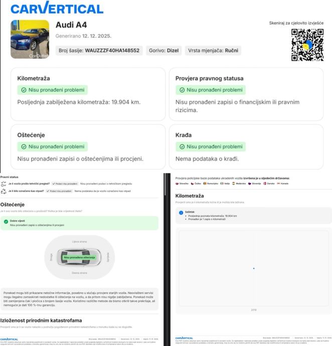 - Vozilo posjeduje uredno CarVertical izvješće, šaljemo kupcu na uvid.