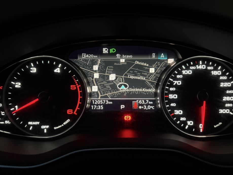 LED dnevna svijetla, LED glavna svjetla,S-tronic automatski mjenjač, Hill holder – HAC, Električno podizanje prozora, Automatski Klima uređaj, Podesivi stup upravljača, Progresivni servo upravljač (Servotronic), Standardizirane kopče za dječje sjedalo (ISOFIX), Aluminijski naplatci R-17, Automatsko uključivanje svjetala, Svijetla za maglu, Multifunkcijski kožni upravljač,Grijanje prednjih sjedala, MMI navigacijski sustav s velikim ekranom na dodir, Audi sound system, Audi parking system plus: parking senzori sprijeda i straga, Keyless Go, Sustav asistencija u vožnji (adaptivni tempomat, Nazdor promjena trake,...)