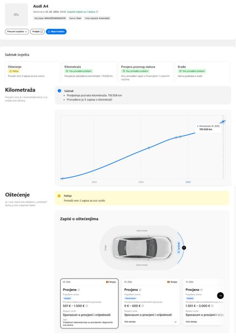 - Jamstvo na tehničku ispravnost vozila, prijeđene kilometre te podrijetlo vozila.