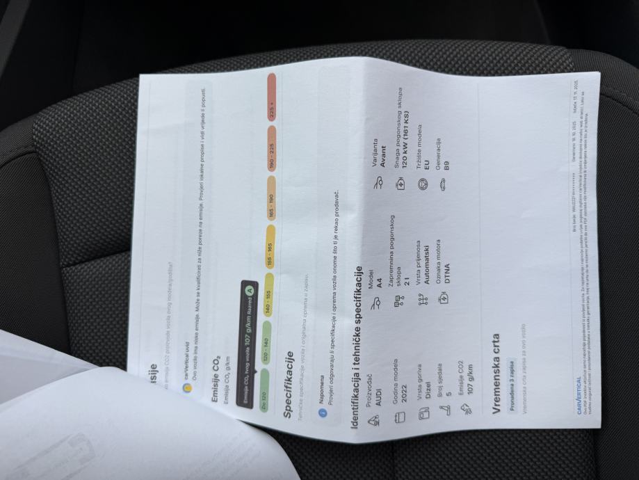 U ponudi je vrlo očuvan Audi A4 Avant 35 TDI iz 2022. godine, s kompletnom servisnom poviješću. Vozilo je bogato opremljeno Business+ paketom, uz napredne sigurnosne i komforne funkcije. Automobil je u izvrsnom mehaničkom i vizualnom stanju — idealan za svakodnevnu vožnju uz maksimalnu udobnost i pouzdanost.