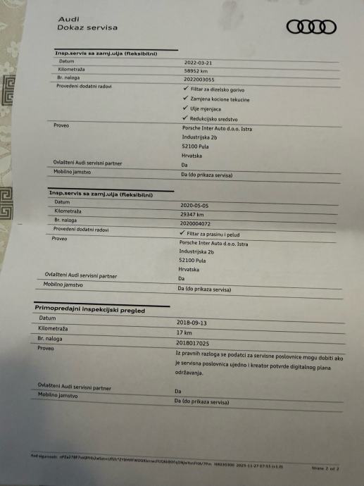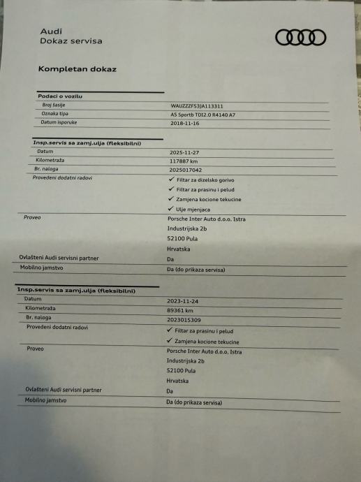 Na prodaju Audi A5 Sportback u izvrsnom stanju, vozilo od prvog vlasnika s kompletnom servisnom poviješću isključivo u ovlaštenom servisu. Automobil je maksimalno očuvan, garažiran i redovito održavan, bez dodatnih ulaganja.