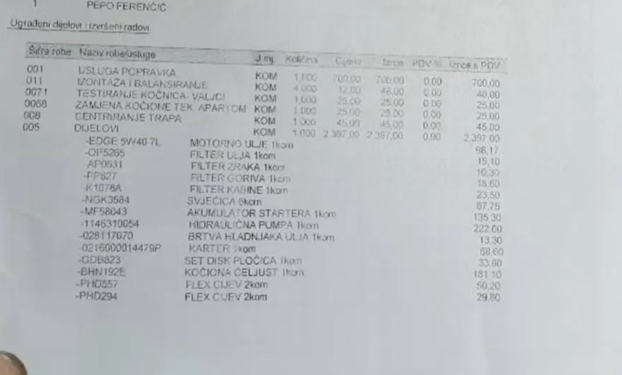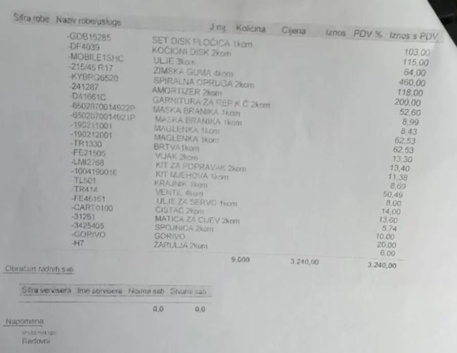 servis plaćen 3250 eur / računi u prilogu ....