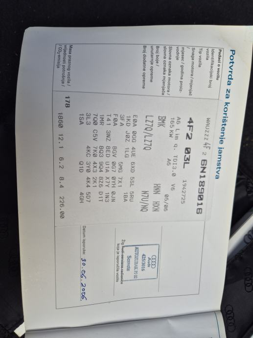 Prodajem rabljeno vozilo: Audi A6