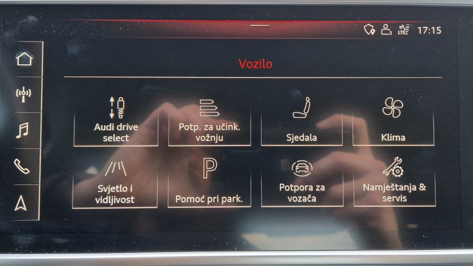 - iznutra sjedala kombinacija kože bočno i alkantare u sredini, el. podesiva sjedala sa memorijom, lumbalno podešenje sjedala, prednja sjedala grijana, sportski kožni MF volan, adaptivni tempomat i limiter brzine, lcd kontrolna tabla (virtualni kokpit), multimedijski sustav s dodirnim zaslonom, HR meni, navigacija s kartama Europe, bluetooth handsfree povezivost s mobilnim uređajima, USB i aux priključci, Android auto i Apple carplay zrcaljenje pametnog telefona, automatska dvozonska klima, Audi Drive Select, ambijentalna rasvjeta, središnji naslon za ruku s pretincem, el. podizači stakla sprijeda i straga, djeljiva stražnja klupa, središnji nasloni za ruku straga