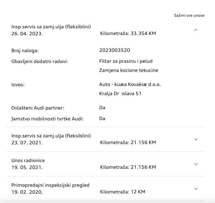 * Servisna knjižica u ovlaštenom Audi servisu ( zadnji redovni servis bio 26.04.2023 - slika u prilogu)