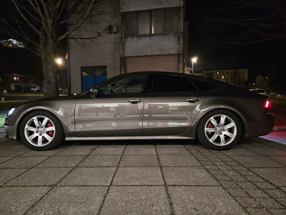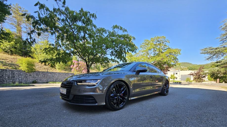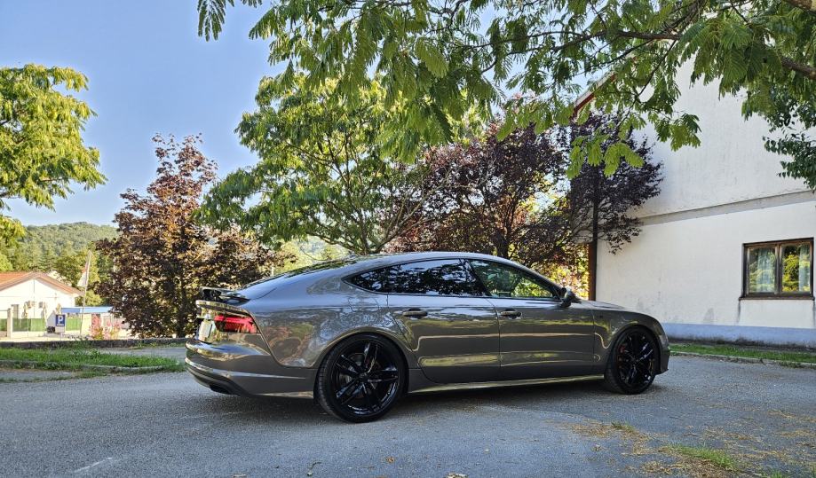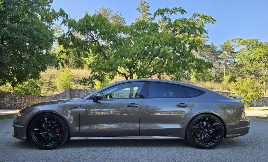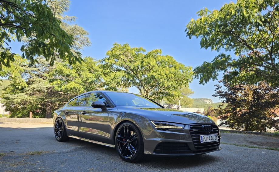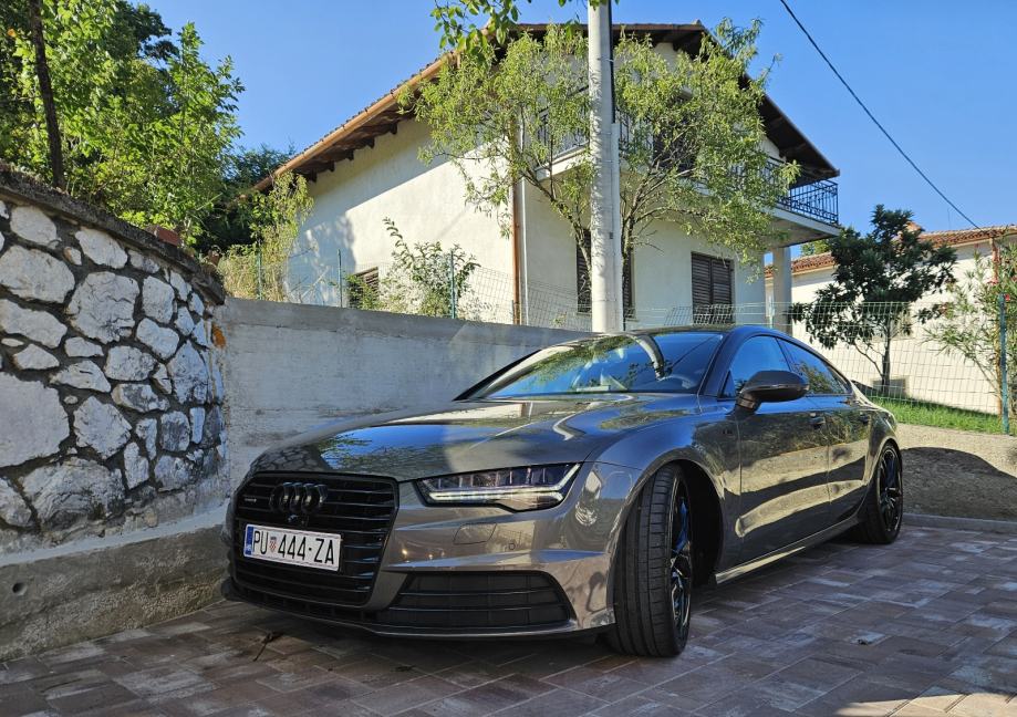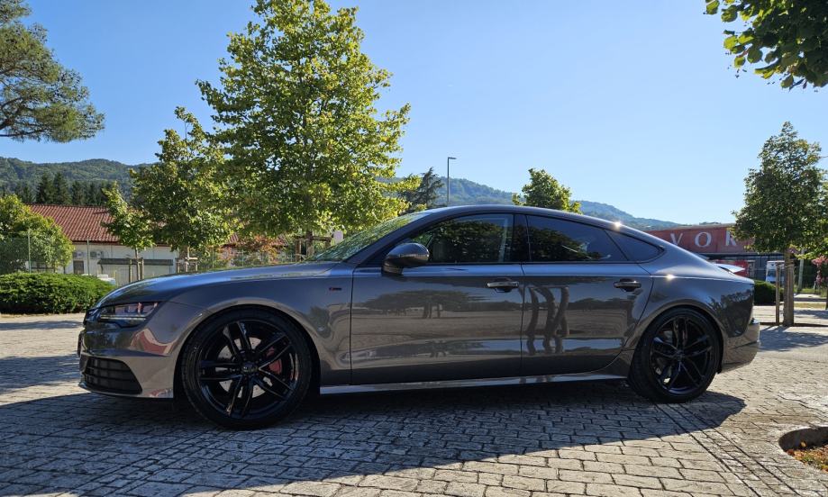 Prodaje se atraktivan automobil Audi A7 3.0 TDI QUATTRO sa motorom jačine 160kw i automatskim 7-stupanjskim S-tronic mjenjačem u rijetkoj i atraktivnoj boji DAKOTA GREY. Automobil je u odličnom stanju te s odličnim voznim karakteristikama i udobnošću te je redovno servisiran u ovlaštenom servisu. Vlasnik sam vozila nešto manje od 2 godine te sam u tom razdoblju prešao nešto više od 10000km i vozilo sam redovno prao i održavao vrhunskim sredstvima iz svijeta auto kozmetike te u servisnim intervalima prije 10000km. Vozilo dolazi sa potpuno novim zimskim gumama BRIDGESTONE BLIZZAK u dimenziji 255 45 R18 sa originalnim AUDI felgama te sa potpuno novim ljetnim gumama KUMHO ECSTA SPORT PS72 dimenzije 255 35 R20 koje također dolaze sa originalnim AUDI felgama koje su obojane u crno (dolaze sa distancama 30mm straga i 20mm sprijeda radi većeg ET felga). Na autu je odrađeno par sitnih kozmetičkih detalja na vanjštini vozila te u interijeru (crni znakovi, folija na farovima sprijeda i straga, ljepljene registarske pločice, "dechrome" svih dijelova u krom boji, Quattro led znak ispod vrata, led svijetla u unutrašnjosti, crvena klješta itd itd) a od većih zahvata valja spomenuti sportske opruge EIBACH Pro kit 30/25mm i sportski volan replika AUDI R8 s kojima je auto dobio još bolje vozne osobine. Za oba zahvata (kao i sve sitne) posjedujem original dijelove i kupcu ih dajem uz auto, a auto je i vrlo jednostavno te jeftino ponovno vratiti na tvorničko stanje. Nedavno su na vozilu zamijenjeni i svi diskovi i pločice (Zimmerman i ATE) tako da tu kupac nema brige još puno km. Upravo je na autu odrađen i mali servis + zamjena ulja u mjenjaču i oba diferencijala zajedno sa svim filterima i sitnim priborom te ujedno i tehnički pregled koji vrijedi do 12/2026. Na autu sve radi ispravno. Kupac je slobodan po prethodnom dogovoru i uz moje prisustvo odvesti auto kod lokalnog mehaničara i provjeriti stanje vozila na dizalici, spojiti ga na dijagnostiku ili sl.