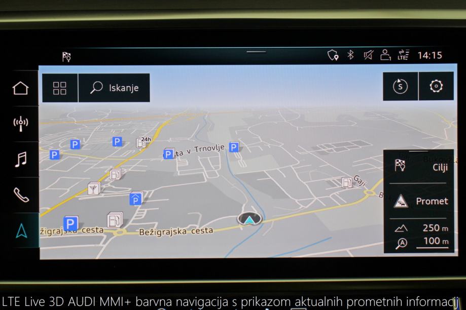 • AUDI MMI+ LTE Live navigacija s prikazom aktualnih cestnih informacij