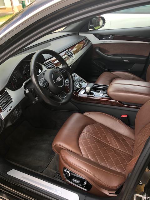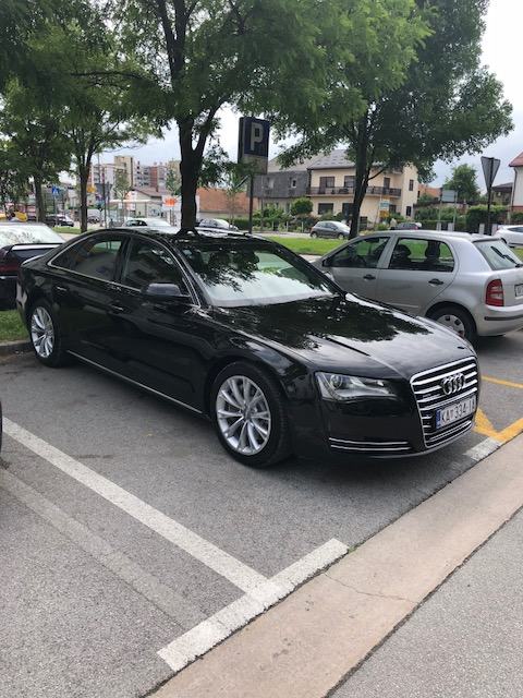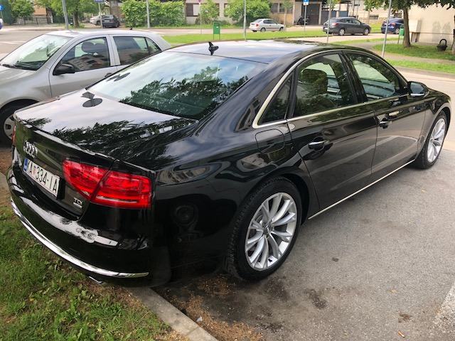Oprema: unutrašnjost je u posebnoj koži, MMI, 3 TV-a, odvojena multimedia (naprijed, nazad, lijevo, desno)-BOSE ozvučenje (mogućnost slušanja preko AUDI slušalica), navigacija, šiber, vakuum na vratima (samo ih prislonite i sama se zatvaraju), automatsko otvaranje i zatvaranje poklopca prtljažnika, ambientalna rasvjeta (3 opcije), sve komande na volanu, keyless entry (na svim vratima), paljenje bez ključa.....uglavnom, sve što se u tom trenutku nudilo na listi dodatne opreme je stavljeno u njega - plaćen je preko 170.000 EUR-a (kupljen je novi u Hrvatskoj) !!!