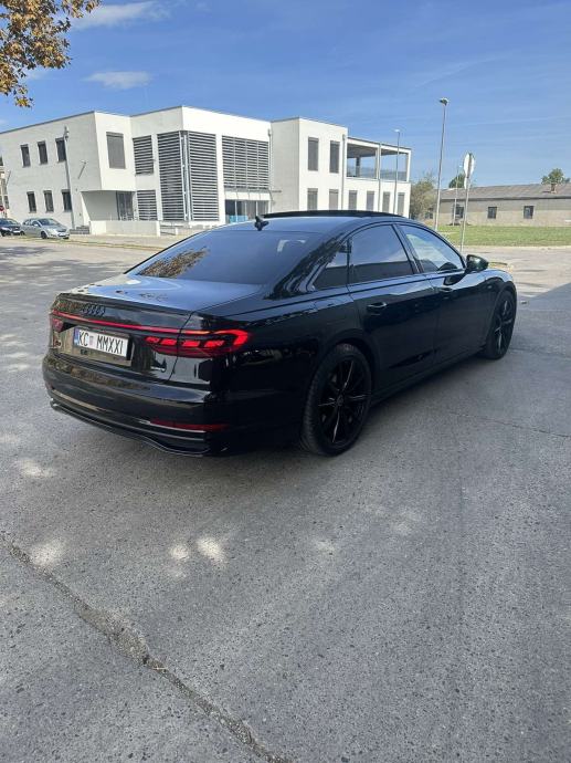 Prodaje se osobni automobil Audi A8 50 TDI quattro TipTronic Black edition S-LINE, 2023. godina, full oprema, BANG&OLUFSEN zvučni sustav, panorama krov, kožna masažna sjedala, putna računala na zadnjim sjedištima. Vozilo je ispravno i u TOP stanju, glasi na poduzeće i u sustavu PDV-a je. Za više informacija upitati na tel. 098/921 8319.