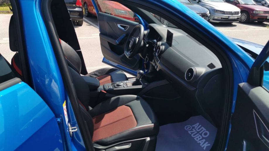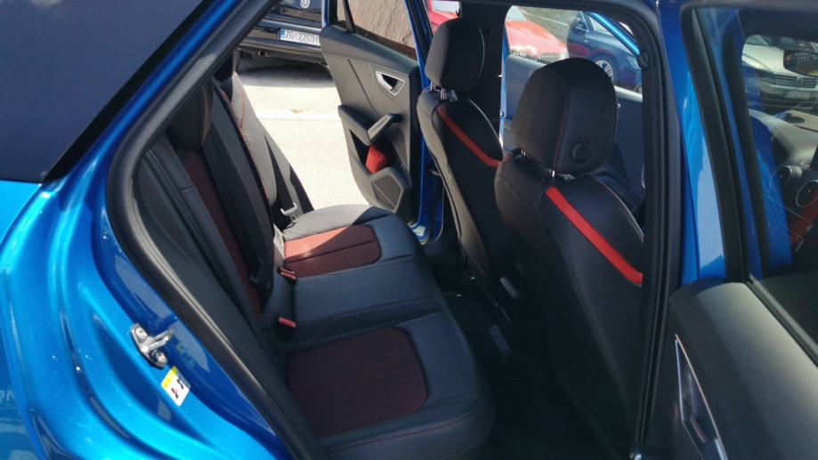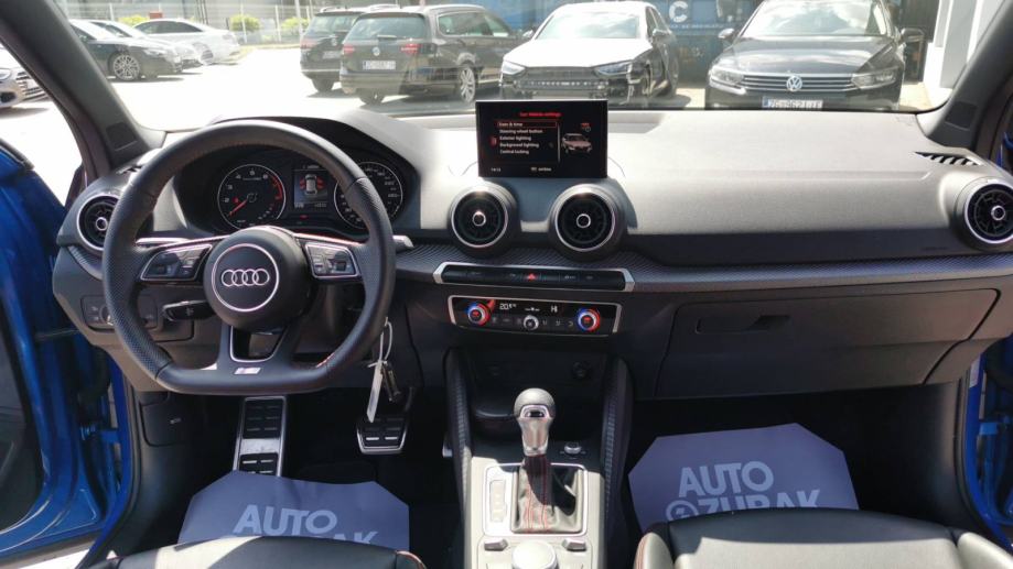 Audi Q2 35 TFSI Sport+ S tronic 5 vrataLokacija vozila: AutoZubak SesveteOprema:Prednje prostirkeAutomatski dvozonski klima uređajVišenamjenski kožni sportski upravljač (3-kraki), sa višenamjenskim tipkama za upravljanje putnog računala, navigacije, telefona i radio uređaja (ovisno o naručenoj opremi)Zračni jastuci za glavuElektrično podesivi, grijani vanjski retrovizoriCentralno daljinsko zaključavanjeElektrična parkirna kočnicaProgresivni servo upravljač (Servotronic)Dvostruka ispušna cijevAtermička bočna staklaABS (sustav protiv blokiranja kočnica)Preklopni naslon zadnje klupe 60/40Električno podizanje prednjih i stražnjih prozora3-kraki sportski upravljač od kožeISOFIX priprema za suvozačko sjedalo, s deaktivacijom suvozačkog zračnog jastuka te električnim osiguračem za stražnja vrataPranje prednjih svjetalaKopče za dječje sjedalo (ISOFIX)-stragaDodatno lakiranje donjeg djela karoserije u boji vozilaPodne prostirke stragaMMI Radio plusAudi hold assistStart&StopBrisač stražnjeg staklaNaslon(i) za ruke naprijed - podesiv(i)Bočni zračni jastuci naprijedSenzor za svijetlost/kišuAudi pre sense sprijedaBrojač okretajaSportski kožni upravljač s 3 kraka, uključuje ručicu mjenjača u kožiAudi parking system stragaSportska sjedala naprijedTonizirana staklaKromiran završetak ispušnih cijeviPutno računaloPodesivi stup upravljačaCrveni unutranji ukrasni elementiSjedalo vozača i suvozača podesivo po visiniZračni jastuci za vozača i suvozačaPaket dodatnog osvjetljenja: sadrži LED osvjetljenje: svjetla za čitanje sprijeda, stražnje svjetlo, osvjetljena zrcala za šminkanje, osvjetljenje prtljažnika, osvjetljenje prostora za noge sprijeda7-stupanjski mjenjač sa dvostrukom spojkom (DSG)Obloge pragova - aluminijAutomatski klima uređajPrednja LED svjetla: sadrži i LED dnevna svjetla, stražnja svjetla u LED tehnologiji s dinamičkim pokazivačima smjera, te sustav za pranje prednjih svjetalaPreklopiva stražnja klupa - djeljivaZatamnjena stakla stragaUSBMMI navigacijski sustav plus: hard disk sa navigacijskim podacima, veći ekran u boji, MMI touch sustav, 10 GB prostora za glazbene datoteke, update karata, Audi connect, Wi-Fi hotspot, 2 čitača SD kartica, DVD player, AUX-IN i USB priključakAudi sound system: 10 zvučnika (centralni zvučnik), subwoofer, 6-kanalno pojačalo (180W)Lakometalni naplaci Audi Sport -19 s 10 Y-krakovaAudi pre sense basicPutno računalo s ekranom u bojiVišefunkcijski sportski kožni upravljač, 3 kraki, sa ručicama za izmjenu stupnjeva prijenosa, ravan s donje strane, višenamjenske tipke za upravljanje funkcijama putnog računala, navigacije, telefona i radio uređaja (ovisno o naručenoj opremi)Audi hold assistAudi Bluetooth interfaceS line exterieur paket: prednji i stražnji branik, te bočni pragovi u markantnom sportskom dizajnu, poprečna letvica po cijeloj dužini prednjeg branika u boji aluminija, difuzor u platinum sivoj boji, ukrasne aluminijske letvice na pragovima na ulazu sa S amblemom, osvijetljene, S line natpisi na prednjim blatobranimaBlack optik paket: crni umetci na singleframe rešetci, crni detalji na prednjem i stražnjem branikuPaket ambijentalnog osvjetljenja s osvjetljenim dekorativnim umetcima: sadrži LED osvjetljenje: svjetla za čitanje sprijeda, stražnje svjetlo, osvjetljena zrcala za šminkanje, osvjetljenje prtljažnika, osvjetljenje prostora za noge sprijeda, osvjetljenje dekorativnog umetka ispred suvozača, osvjetljenje dekorativnih umetaka u donjem dijelu središnje konzole, ambijentalno osvjetljenje u prednjim vratimaAudi glazbeno sučelje, Audi smartphone sučelje, 2 čitača SD karticaMetalik bojaSportski ovjesObloga krova, crna tkaninaRezervni kotač umanjenih dimenzijaTempomatSportski krovni spoiler u boji vozila