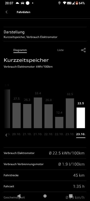 Kao drugi vlasnik, napravio 54.000 km, potrošnja goriva prosječno 4,4 l/100km, vise od 50% vožen na struju, sve vidljivo u kompjuteru i aplikaciji koja dokumentira sve aktivnosti i potrošnju na dnevnoj bazi.
