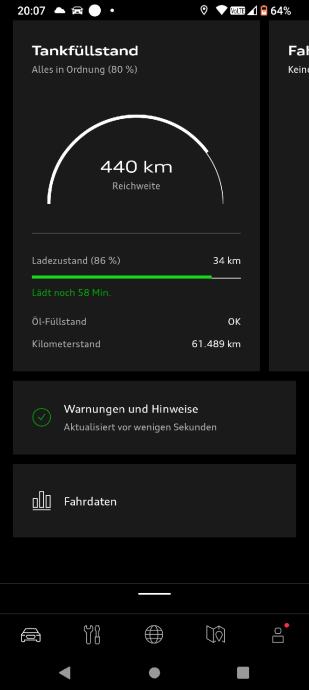 Registrirana original Audi aplikacija za nadzor punjenja, otključavanje i paljenje klime putem GSM signala.