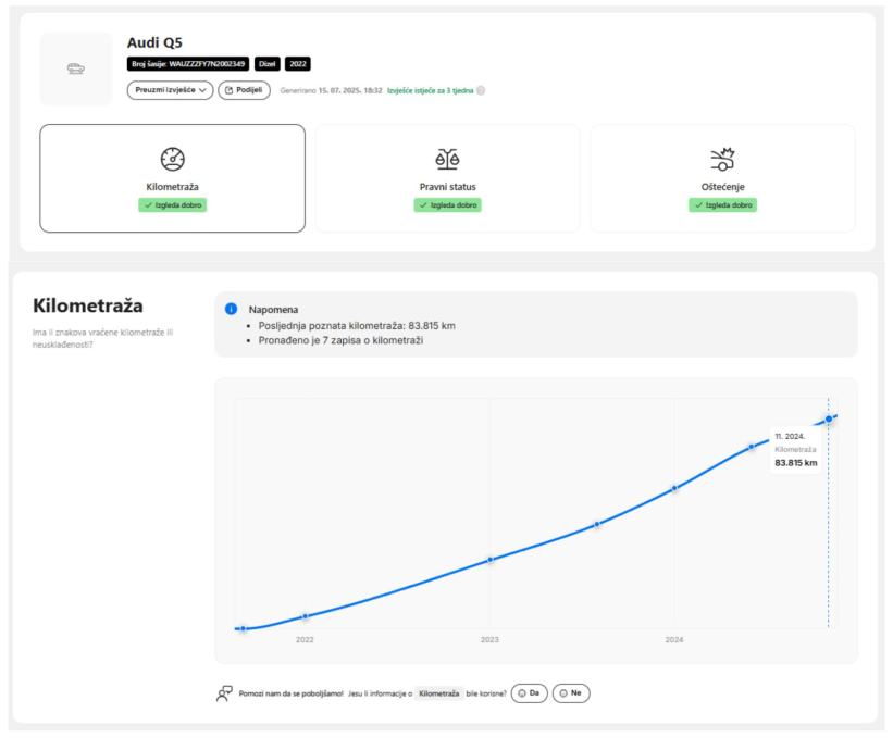 - Jamstvo na tehničku ispravnost vozila, prijeđene kilometre te podrijetlo vozila.