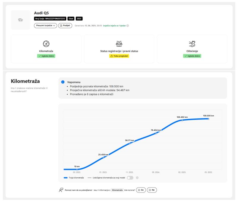 - Jamstvo na tehničku ispravnost vozila, prijeđene kilometre te podrijetlo vozila.