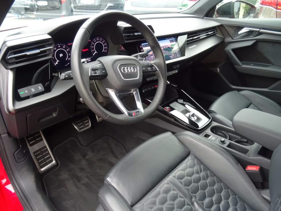 Paket za pohranu i prtljažnik, adaptivna kočiona svjetla, deaktivirajući zračni jastuk suvozača, zračni jastuk vozača/suvozača, protuklizna kontrola (ASR) s EDL-om, Audi connect (sustav za poziv u nuždi i pomoć), Audi Drive Select, crni vanjski retrovizori, LED pokazivači smjera integrirani u vanjske retrovizore, crna tkanina za strop, krovni spojler, akustični i vizualni prednji i stražnji parkirni senzori sa selektivnim prikazom (APS Plus), osvijetljeni pragovi vrata s aluminijskim umetkom i natpisom, LED ulazna svjetla s funkcijom projekcije, sustav pomoći vozaču: pomoć pri izbjegavanju manevriranja, sustav pomoći vozaču: pomoć pri kočenju (Audi pre sense front), sustav pomoći vozaču: pomoć pri kočenju (sekundarni sudar), sustav pomoći vozaču: pomoć pri parkiranju. Sustav pomoći vozaču: Upozorenje na napuštanje vozne trake, Informacijski sustav za vozača (FIS) sa zaslonom u boji, Podne prostirke od velura, Poklopac/rolo za prtljažnik, Ograničavač brzine, LED stražnja svjetla s dinamičnim pokazivačima smjera, Unutrašnjost: Aluminijski izgled, Isofix nosači za dječju sjedalicu, Karoserija: 4 vrata, Digitalna instrument ploča (virtualni kokpit plus) s RS dizajnom, Paket konturne/ambijentalne rasvjete (plus), Sustav zračnih jastuka za glavu (Sideguard), Stražnji nasloni za glavu (3-struki), Proširenja blatobrana, 2,5 L - 294 kW 20V TFSI motor, Crni paket stiliziranja, Papučice i oslonac za noge od nehrđajućeg čelika, Progresivni upravljač, Digitalni radio prijem (DAB), Set za popravak guma, RS prednji branik Sport Design, RS prednja sportska sjedala, Naslon stražnjeg sjedala djeljiv/preklopiv (40:20:40), Niske emisije prema standardu emisija Euro 6d, Ručica mjenjača/mjenjača od alcantare/mikrofibre, Bočni zračni jastuk sprijeda, bočni zračni jastuk sprijeda u sredini (interakcijski zračni jastuk), start/stop sustav, sportski dizajn branika (S-line), sportski dizajn branika sa stražnjim difuzorom umetak, umetci na vratima od Alcantare, univerzalno Bluetooth sučelje, servisna knjižica koju održava Audi i još mnogo toga.