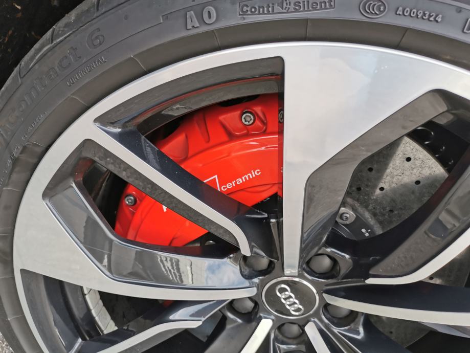 Vozilo ima naknadno ugrađen tvornički Audijev kočioni sustav visokih performansi s keramičkim prednjim kočnim diskovima ojačanim karbonskim vlaknima
