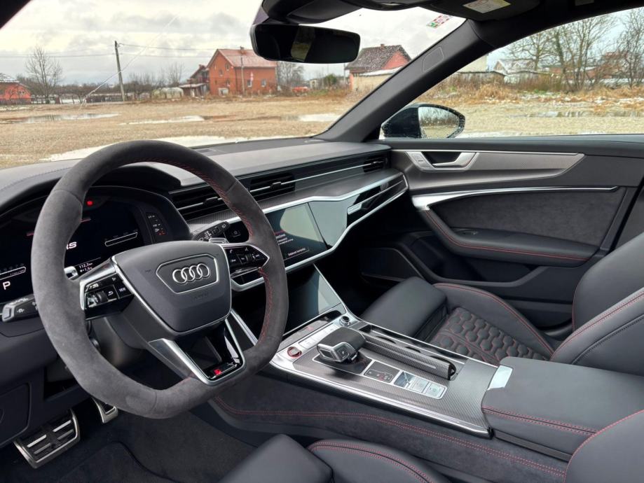 "TVORNIČKO JAMSTVO 6 GODINA OD DATUMA PRVE REGISTRACIJE ILI DO 150.000 KM!Kupljen nov u Hrvatskoj kod ovlaštenog trgovca.Puno dodatne opreme i dodatno:- Vanjska boja: Mythos crna Metallic- Boja unutrašnjosti: crno 2 USB priključka straga- Adaptive cruise control i vođenje unutar- Akustično i grijano vjetrobransko staklo- Aluminijski lijevani naplatci 10,5 J- Asistent promjene vozne trake,- Audi phone box- Audi ringovi i RS 6 natpis u crnoj boji- Audi virtualni kokpit s dodatnim RS- Bang & Olufsen Advanced Sound System s- Grijanje sjedala sprijeda i bočnih- Head-up zaslon- Kočione čeljusti u sjajnoj crvenoj boji- Kućišta vanjskih osvrtnih zrcala u- Panoramski krovni otvor- Park assist- Presvlake sjedala od Valcona kože za S- RS black optik paket- RS dizajn paket crveno- RS sportski ispušni sustav- RS sportski vozni postroj plus s Dynamic- Servo potpora za zatvaranje vrata"
